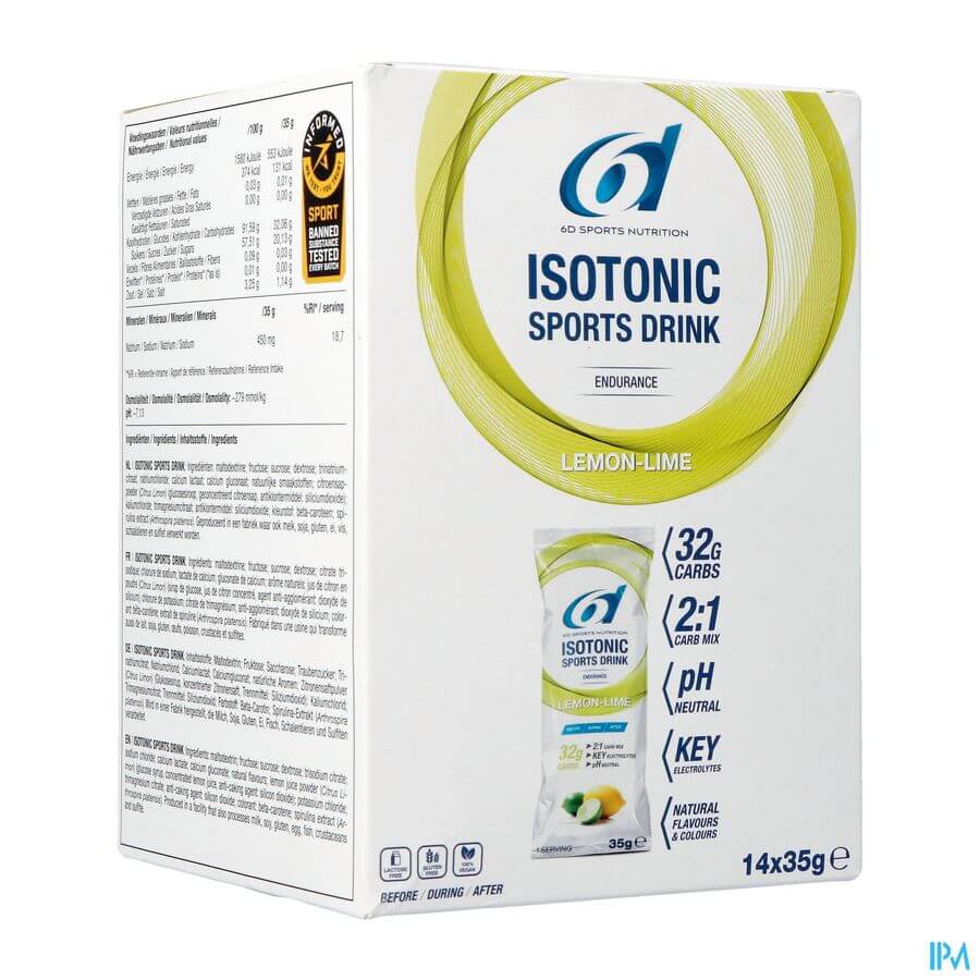 6d Isotonic Sports Drink Lemon Lime Prd Sach14x35g est un complément alimentaire disponible en pharmacie. Il ne peut se substituer à un mode de vie sain et à une alimentation variée et équilibrée. Ne prenez pas plus que la dose quotidienne recommandée indiquée sur l'emballage. Demandez conseil à votre pharmacien. Tenir hors de portée des enfants.